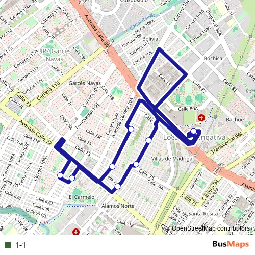See why over 2 million users trust and consider busmaps.com as the best public transport website. busmaps gives you Bogota Buses suggested routes, real-time bus tracker, line route maps in Bogota, and helps to find the closest 1-1 bus stops near you. No internet available? Download an offline PDF map and bus schedule for the 1-1 bus to take on your trip.