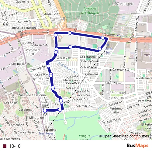 See why over 2 million users trust and consider busmaps.com as the best public transport website. busmaps gives you Soacha Buses suggested routes, real-time bus tracker, line route maps in Soacha, and helps to find the closest 10-10 bus stops near you. No internet available? Download an offline PDF map and bus schedule for the 10-10 bus to take on your trip.