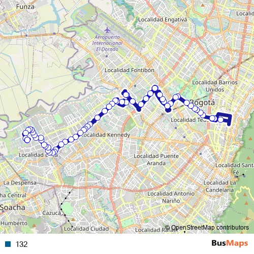 See why over 2 million users trust and consider busmaps.com as the best public transport website. busmaps gives you Bogota Buses suggested routes, real-time bus tracker, line route maps in Bogota, and helps to find the closest 132 bus stops near you. No internet available? Download an offline PDF map and bus schedule for the 132 bus to take on your trip.