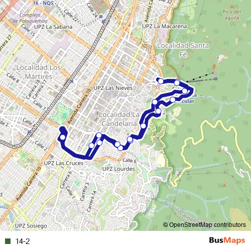 See why over 2 million users trust and consider busmaps.com as the best public transport website. busmaps gives you Bogota Buses suggested routes, real-time bus tracker, line route maps in Bogota, and helps to find the closest 14-2 bus stops near you. No internet available? Download an offline PDF map and bus schedule for the 14-2 bus to take on your trip.