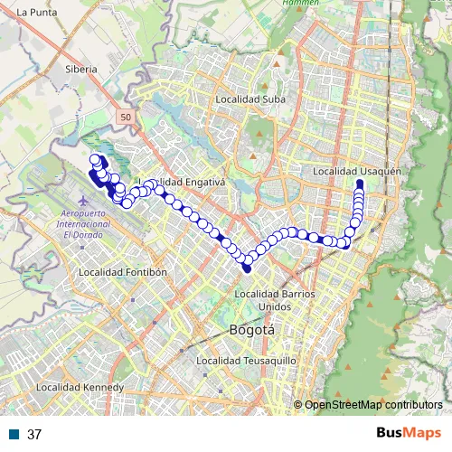 See why over 2 million users trust and consider busmaps.com as the best public transport website. busmaps gives you Bogota Buses suggested routes, real-time bus tracker, line route maps in Bogota, and helps to find the closest 37 bus stops near you. No internet available? Download an offline PDF map and bus schedule for the 37 bus to take on your trip.