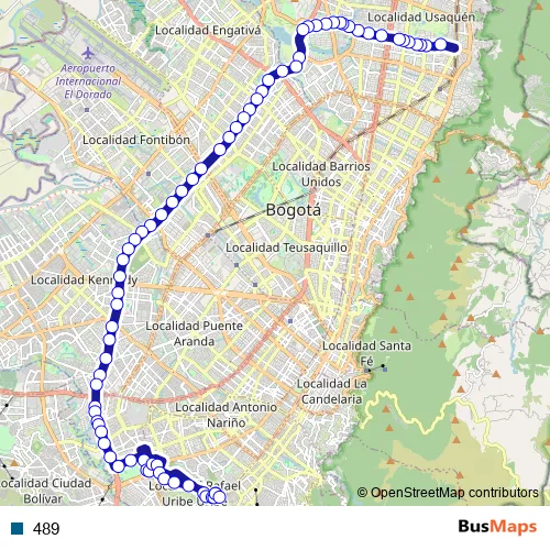 See why over 2 million users trust and consider busmaps.com as the best public transport website. busmaps gives you Bogota Buses suggested routes, real-time bus tracker, line route maps in Bogota, and helps to find the closest 489 bus stops near you. No internet available? Download an offline PDF map and bus schedule for the 489 bus to take on your trip.