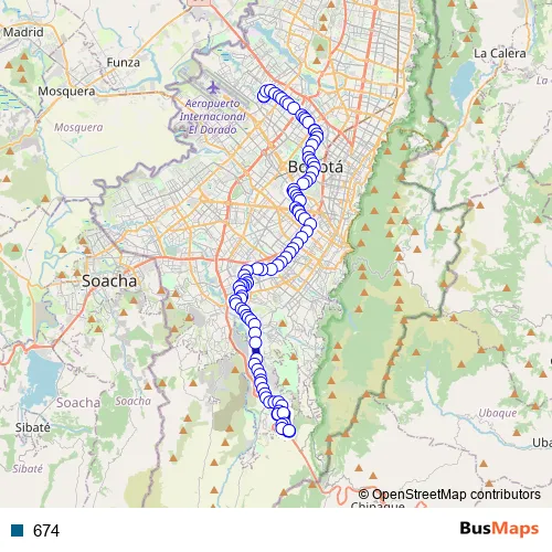 See why over 2 million users trust and consider busmaps.com as the best public transport website. busmaps gives you Bogota Buses suggested routes, real-time bus tracker, line route maps in Bogota, and helps to find the closest 674 bus stops near you. No internet available? Download an offline PDF map and bus schedule for the 674 bus to take on your trip.