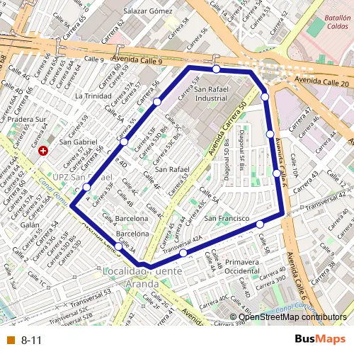 See why over 2 million users trust and consider busmaps.com as the best public transport website. busmaps gives you Bogota Buses suggested routes, real-time bus tracker, line route maps in Bogota, and helps to find the closest 8-11 bus stops near you. No internet available? Download an offline PDF map and bus schedule for the 8-11 bus to take on your trip.