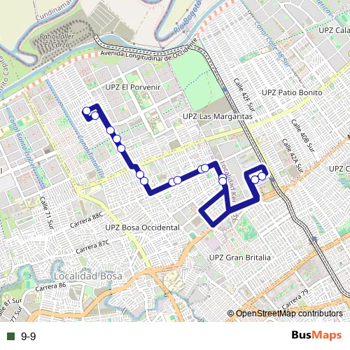See why over 2 million users trust and consider busmaps.com as the best public transport website. busmaps gives you Bogota Buses suggested routes, real-time bus tracker, line route maps in Bogota, and helps to find the closest 9-9 bus stops near you. No internet available? Download an offline PDF map and bus schedule for the 9-9 bus to take on your trip.