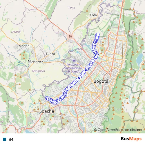 See why over 2 million users trust and consider busmaps.com as the best public transport website. busmaps gives you Bogota Buses suggested routes, real-time bus tracker, line route maps in Bogota, and helps to find the closest 94 bus stops near you. No internet available? Download an offline PDF map and bus schedule for the 94 bus to take on your trip.