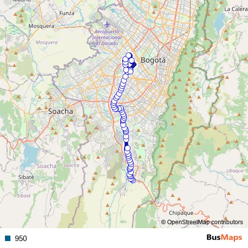 See why over 2 million users trust and consider busmaps.com as the best public transport website. busmaps gives you Bogota Buses suggested routes, real-time bus tracker, line route maps in Bogota, and helps to find the closest 950 bus stops near you. No internet available? Download an offline PDF map and bus schedule for the 950 bus to take on your trip.
