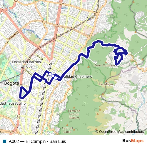 Bus A002 - El Campin - San Luis: Full Schedule in Bogota