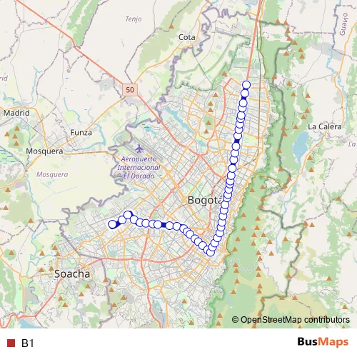 See why over 2 million users trust and consider busmaps.com as the best public transport website. busmaps gives you Bogota Buses suggested routes, real-time bus tracker, line route maps in Bogota, and helps to find the closest B1 bus stops near you. No internet available? Download an offline PDF map and bus schedule for the B1 bus to take on your trip.