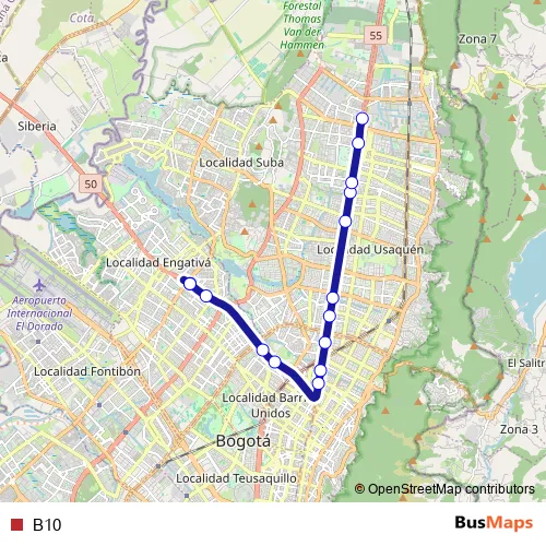See why over 2 million users trust and consider busmaps.com as the best public transport website. busmaps gives you Bogota Buses suggested routes, real-time bus tracker, line route maps in Bogota, and helps to find the closest B10 bus stops near you. No internet available? Download an offline PDF map and bus schedule for the B10 bus to take on your trip.