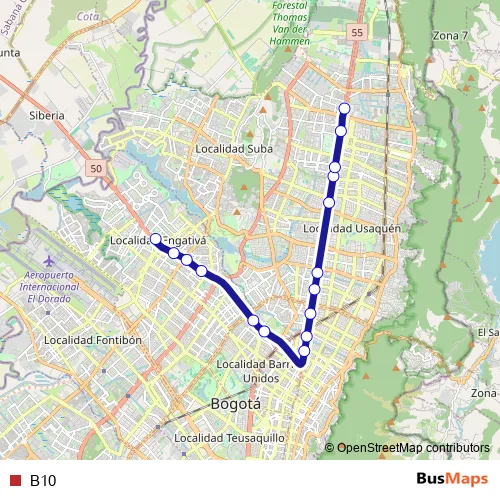 See why over 2 million users trust and consider busmaps.com as the best public transport website. busmaps gives you Bogota Buses suggested routes, real-time bus tracker, line route maps in Bogota, and helps to find the closest B10 bus stops near you. No internet available? Download an offline PDF map and bus schedule for the B10 bus to take on your trip.