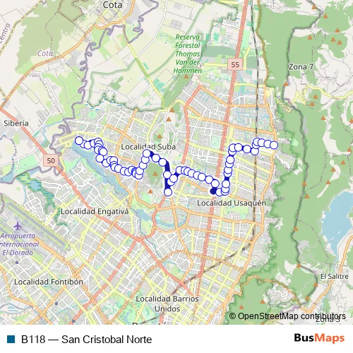 See why over 2 million users trust and consider busmaps.com as the best public transport website. busmaps gives you Bogota Buses suggested routes, real-time bus tracker, line route maps in Bogota, and helps to find the closest B118 bus stops near you. No internet available? Download an offline PDF map and bus schedule for the B118 bus to take on your trip.