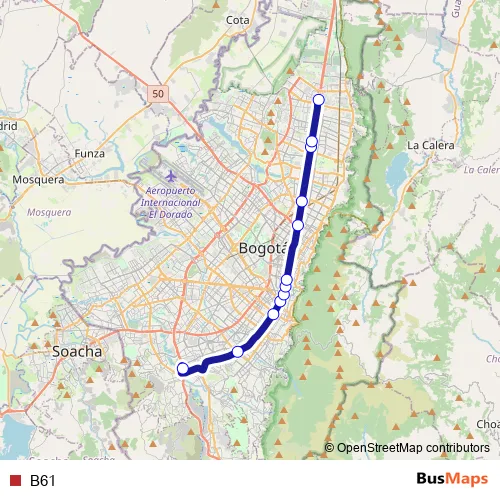 See why over 2 million users trust and consider busmaps.com as the best public transport website. busmaps gives you Bogota Buses suggested routes, real-time bus tracker, line route maps in Bogota, and helps to find the closest B61 bus stops near you. No internet available? Download an offline PDF map and bus schedule for the B61 bus to take on your trip.