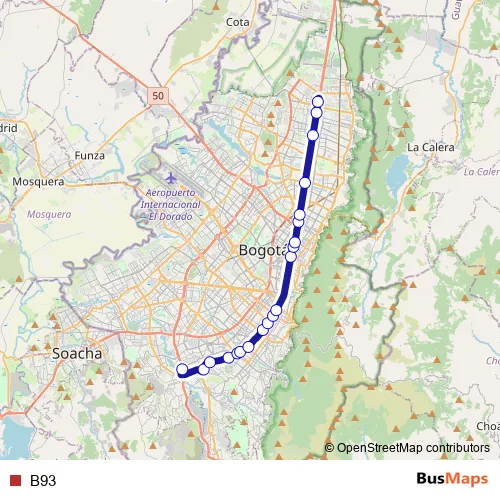 See why over 2 million users trust and consider busmaps.com as the best public transport website. busmaps gives you Bogota Buses suggested routes, real-time bus tracker, line route maps in Bogota, and helps to find the closest B93 bus stops near you. No internet available? Download an offline PDF map and bus schedule for the B93 bus to take on your trip.