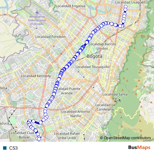See why over 2 million users trust and consider busmaps.com as the best public transport website. busmaps gives you Bogota Buses suggested routes, real-time bus tracker, line route maps in Bogota, and helps to find the closest C53 bus stops near you. No internet available? Download an offline PDF map and bus schedule for the C53 bus to take on your trip.