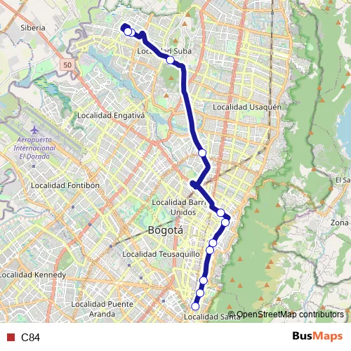 See why over 2 million users trust and consider busmaps.com as the best public transport website. busmaps gives you Bogota Buses suggested routes, real-time bus tracker, line route maps in Bogota, and helps to find the closest C84 bus stops near you. No internet available? Download an offline PDF map and bus schedule for the C84 bus to take on your trip.