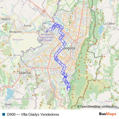 See why over 2 million users trust and consider busmaps.com as the best public transport website. busmaps gives you Bogota Buses suggested routes, real-time bus tracker, line route maps in Bogota, and helps to find the closest D800 bus stops near you. No internet available? Download an offline PDF map and bus schedule for the D800 bus to take on your trip.