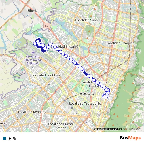 See why over 2 million users trust and consider busmaps.com as the best public transport website. busmaps gives you Bogota Buses suggested routes, real-time bus tracker, line route maps in Bogota, and helps to find the closest E25 bus stops near you. No internet available? Download an offline PDF map and bus schedule for the E25 bus to take on your trip.