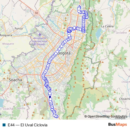 See why over 2 million users trust and consider busmaps.com as the best public transport website. busmaps gives you Bogota Buses suggested routes, real-time bus tracker, line route maps in Bogota, and helps to find the closest E44 bus stops near you. No internet available? Download an offline PDF map and bus schedule for the E44 bus to take on your trip.