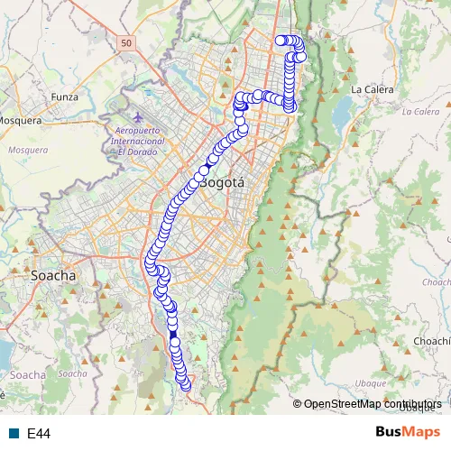 See why over 2 million users trust and consider busmaps.com as the best public transport website. busmaps gives you Bogota Buses suggested routes, real-time bus tracker, line route maps in Bogota, and helps to find the closest E44 bus stops near you. No internet available? Download an offline PDF map and bus schedule for the E44 bus to take on your trip.