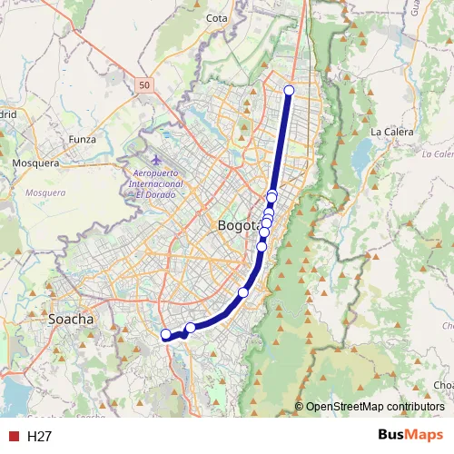 See why over 2 million users trust and consider busmaps.com as the best public transport website. busmaps gives you Bogota Buses suggested routes, real-time bus tracker, line route maps in Bogota, and helps to find the closest H27 bus stops near you. No internet available? Download an offline PDF map and bus schedule for the H27 bus to take on your trip.