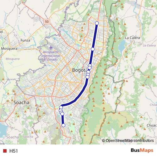 See why over 2 million users trust and consider busmaps.com as the best public transport website. busmaps gives you Bogota Buses suggested routes, real-time bus tracker, line route maps in Bogota, and helps to find the closest H51 bus stops near you. No internet available? Download an offline PDF map and bus schedule for the H51 bus to take on your trip.