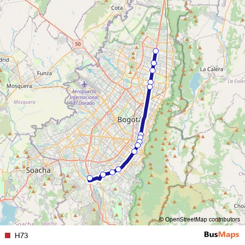 See why over 2 million users trust and consider busmaps.com as the best public transport website. busmaps gives you Bogota Buses suggested routes, real-time bus tracker, line route maps in Bogota, and helps to find the closest H73 bus stops near you. No internet available? Download an offline PDF map and bus schedule for the H73 bus to take on your trip.