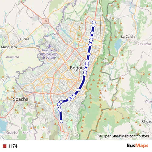 See why over 2 million users trust and consider busmaps.com as the best public transport website. busmaps gives you Bogota Buses suggested routes, real-time bus tracker, line route maps in Bogota, and helps to find the closest H74 bus stops near you. No internet available? Download an offline PDF map and bus schedule for the H74 bus to take on your trip.