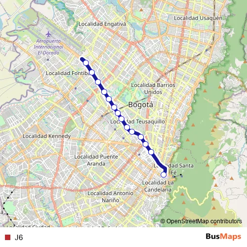 See why over 2 million users trust and consider busmaps.com as the best public transport website. busmaps gives you Bogota Buses suggested routes, real-time bus tracker, line route maps in Bogota, and helps to find the closest J6 bus stops near you. No internet available? Download an offline PDF map and bus schedule for the J6 bus to take on your trip.