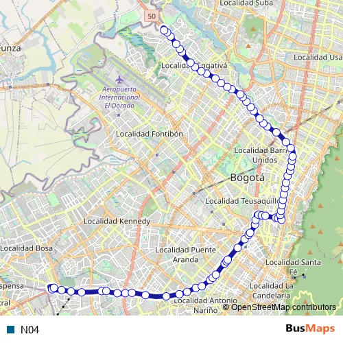 See why over 2 million users trust and consider busmaps.com as the best public transport website. busmaps gives you Bogota Buses suggested routes, real-time bus tracker, line route maps in Bogota, and helps to find the closest N04 bus stops near you. No internet available? Download an offline PDF map and bus schedule for the N04 bus to take on your trip.