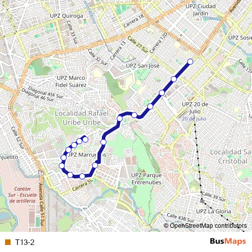 See why over 2 million users trust and consider busmaps.com as the best public transport website. busmaps gives you Bogota Buses suggested routes, real-time bus tracker, line route maps in Bogota, and helps to find the closest T13-2 bus stops near you. No internet available? Download an offline PDF map and bus schedule for the T13-2 bus to take on your trip.