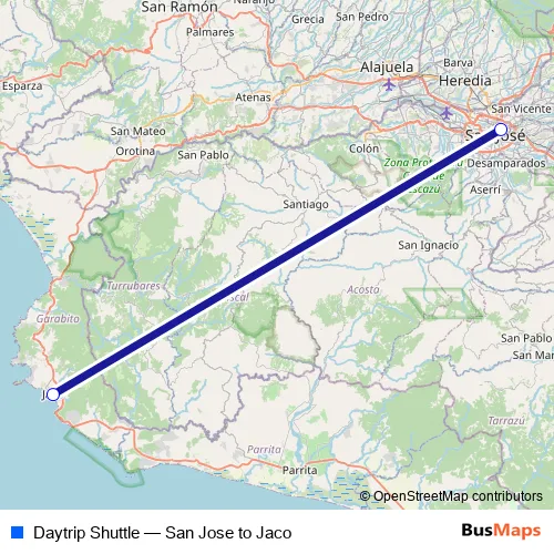 See why over 2 million users trust and consider busmaps.com as the best public transport website. busmaps gives you Jaco Buses suggested routes, real-time bus tracker, line route maps in Jaco, and helps to find the closest Daytrip Shuttle bus stops near you. No internet available? Download an offline PDF map and bus schedule for the Daytrip Shuttle bus to take on your trip.