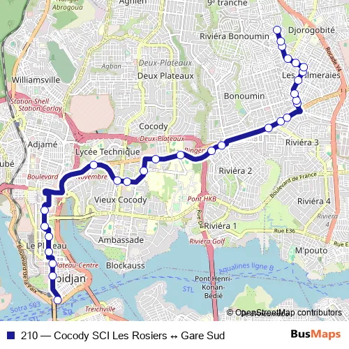 210 Bus - Cocody SCI Les Rosiers ↔ Gare Sud