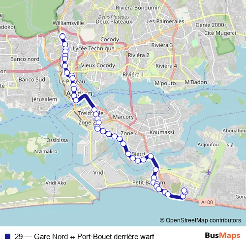Bus 29 - Gare Nord ↔ Port-Bouet derrière warf Schedule in Abidjan