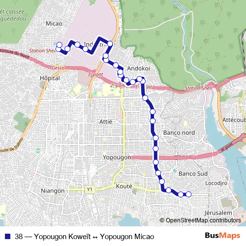 38 Bus - Yopougon Koweït ↔ Yopougon Micao