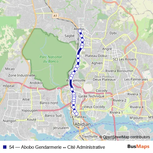 Bus 54 - Abobo Gendarmerie ↔ Cité Administrative: Full Schedule in Abidjan