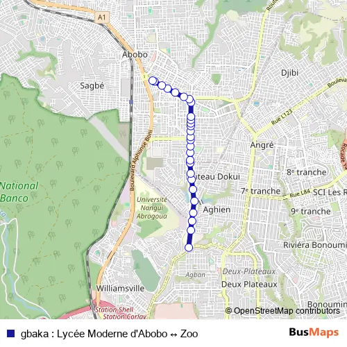 gbaka : Lycée Moderne d'Abobo ↔ Zoo bus Route Map