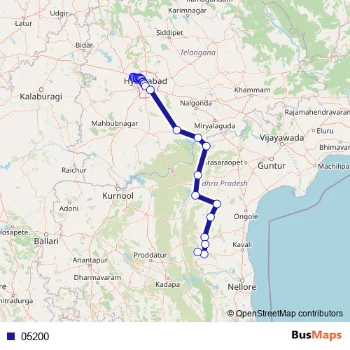 RC Puram BHEL - Beeramguda Rd Mumbai Highway - Chandanagar - RC Puram BHEL Rd Mumbai Highway - Allwyn - Gangaram Road Mumbai Highway - Miyapur - Allwyn Cross Road Mumbai Highway - Nizampet - Miyapur Road Mumbai Highway - Service Road - Vivekananda Nagar Road - Moosapet Road - Mumbai Highway - Mumbai Highway - Sanjeeva Reddy Nagar Main Road - Ameerpet Road - Panjagutta Main Road - Somajiguda Road - Panjagutta Main Road - Telephone Bhavan Road - Hyderabad - Nagarjuna Sagar Road - APSRTC Bus Station Inner Road - Ongole - Nandyal Road - NH167BG