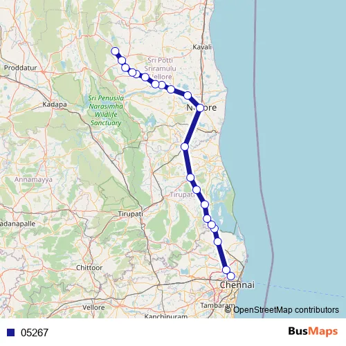 Madhavaram Flyover - Grand Northern Trunk Road (Old NH5) - APSRTC Bus Station Inner Road - Rapur - Podalakur - Sangam Road - Nandipadu Road - NH167BG