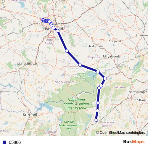 RC Puram BHEL - Beeramguda Rd Mumbai Highway - Chandanagar - RC Puram BHEL Rd Mumbai Highway - Allwyn - Gangaram Road Mumbai Highway - Miyapur - Allwyn Cross Road Mumbai Highway - Nizampet - Miyapur Road Mumbai Highway - Service Road - Mumbai Highway - Sanjeeva Reddy Nagar Main Road - Ameerpet Road - Panjagutta Main Road - Telephone Bhavan Road - Hyderabad - Nagarjuna Sagar Road - NH765;NH565;NH544D;NH544F - APSRTC Bus Station Inner Road