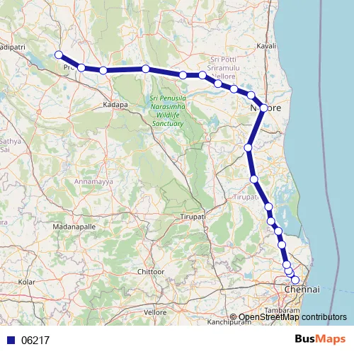 Madhavaram Flyover - Grand North Trunk Service Road - Grand Northern Trunk Road - APSRTC Bus Station Inner Road - Rapur - Podalakur - Sangam Road - Mydukuru Main Road - Mydukuru Road