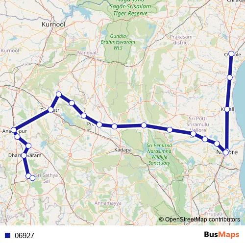Trunk Road - APSRTC PSR Bus Station Inner Road - Rapur - Podalakur - Sangam Road - Mydukuru Main Road - Mydukuru Road - NH544D - APSRTC Bus Station Inner Road - Bus Stand Road - Anantapur - Krishnagiri Road - Damajipalle - Tadipatri Road - Kodur- Dharmavaram Road - Puttaparthi Road