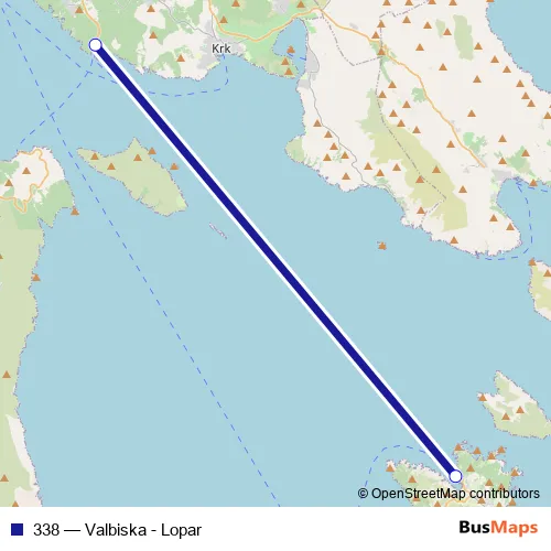 The first stop of the 338 ferry route is Valbiska and the last stop is Lopar. 338 (Valbiska - Lopar) is operational during everyday.