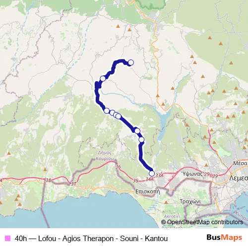 Click here to view the nearest 40h - Lofou - Agios Therapon - Souni - Kantou bus stop.