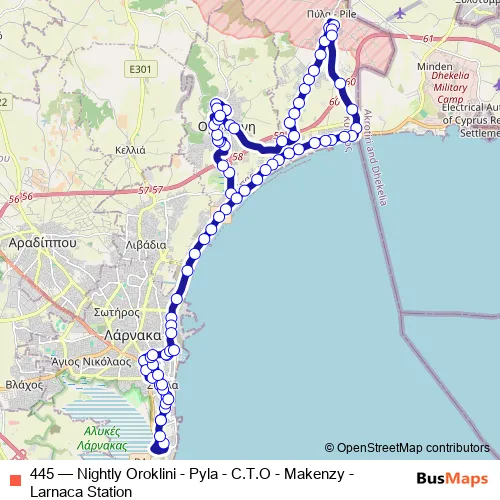 445 Bus - Nightly Oroklini - Pyla - C.T.O - Makenzy - Larnaca Station