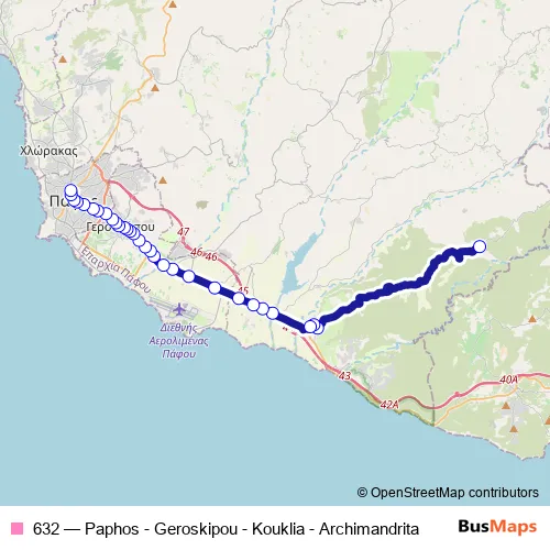Bus 632 - Paphos - Geroskipou - Kouklia - Archimandrita: Full Schedule in Paphos