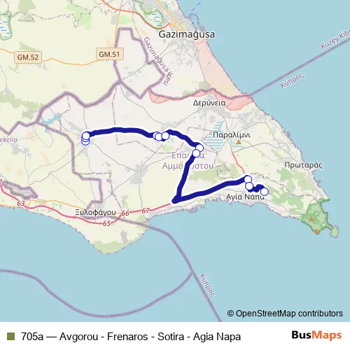 Bus 705a - Avgorou - Frenaros - Sotira - Agia Napa: Full Schedule in Famagusta