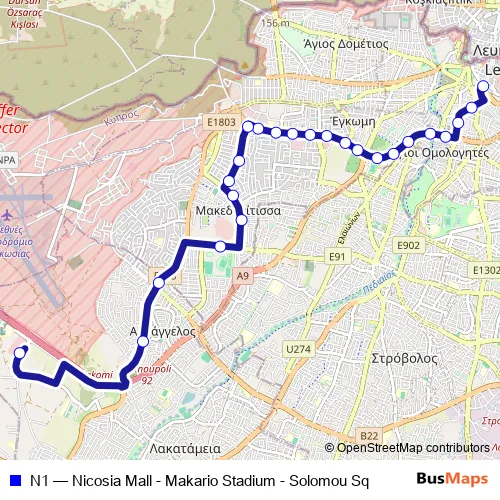 See why over 2 million users trust and consider busmaps.com as the best public transport website. busmaps gives you Nicosia Buses suggested routes, real-time bus tracker, line route maps in Nicosia, and helps to find the closest N1 bus stops near you. No internet available? Download an offline PDF map and bus schedule for the N1 bus to take on your trip.