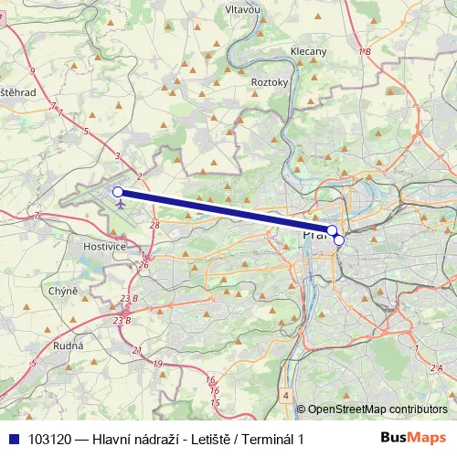 Click here to view the nearest 103120 - Hlavní nádraží - Letiště / Terminál 1 bus stop.