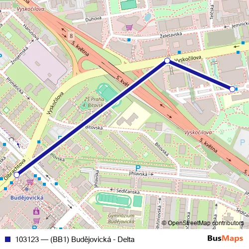 Bus 103123 - (BB1) Budějovická - Delta in Prague: Stops & Timetable
